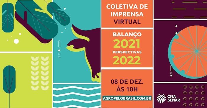 No dia 8 de dezembro, a Confederação da Agricultura e Pecuária do Brasil (CNA) realiza a entrevista coletiva anual para apresentar o balanço de 2021 e as perspectivas do agro para 2022. O evento será virtual e os jornalistas devem se inscrever no link https://www.cnabrasil.org.br/coletiva2021